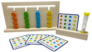 «Karo Quattro Plus» ist ein Lern- und Geschicklichkeitsspiel, in dem alle gleichfarbigen Spielsteine in eine Zeile geordnet werden. Eine Sanduhr misst die Zeit und vier doppelseitige Spielkarten sorgen für noch mehr Spielspass und Abwechslung. «Karo Quattro Plus» wird in Handarbeit in der Schweizer Stiftung Karolinenheim hergestellt und eignet sich für Kinder ab 2 Jahren.