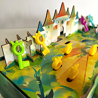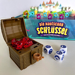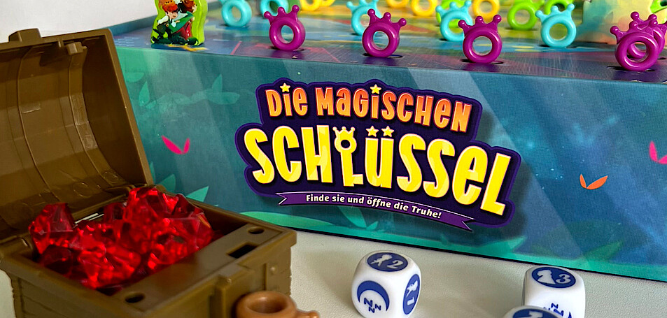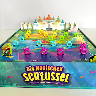 Im Zauberwald finden die Spielerinnen und Spieler magische Schlüssel. Doch nicht alle halten ihr Versprechen und öffnen die Schatztruhe, in der sich funkelnde Kristalle befinden. Nur der goldene Schlüssel ganz am Ende des risikoreichen Pfades öffnet den Schatz ganz bestimmt. Wer zuerst die erforderliche Anzahl Kristalle gesammelt hat, darf sich über den Sieg freuen. Das Strategiespiel «Die magischen Schlüssel» eignet sich für Kinder ab 6 Jahren.