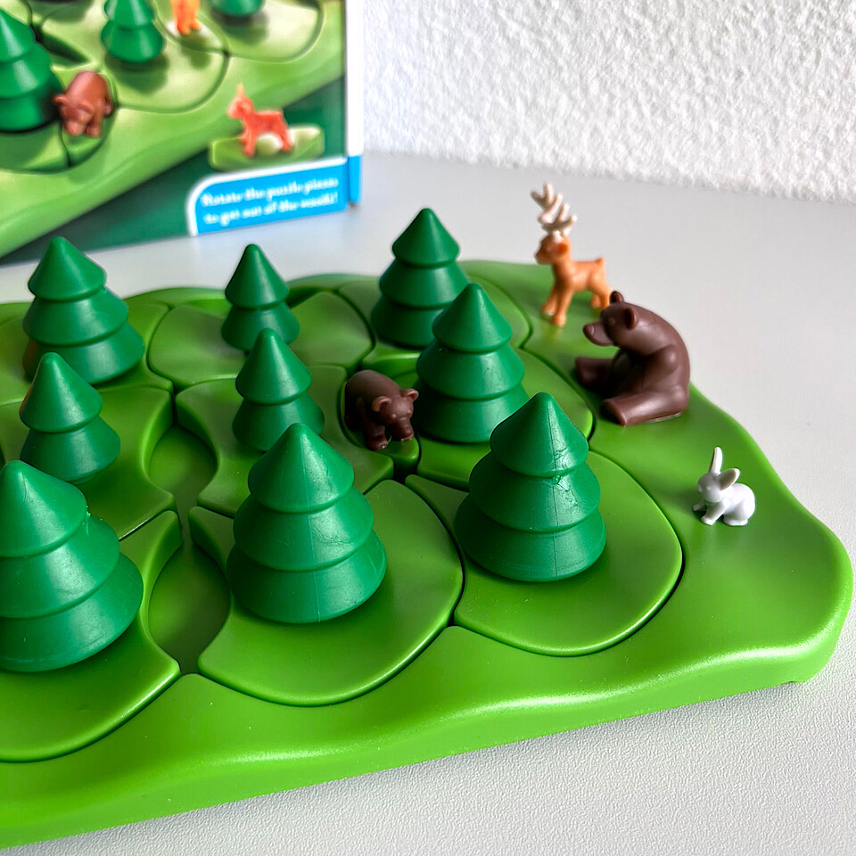 - Räumliches Vorstellungsvermögen: Das Spiel trainiert die Fähigkeit, sich Veränderungen im Raum vorzustellen. Beim Drehen der Waldstücke muss mental vorweggenommen werden, wohin sich die Figuren bewegen. Kinder üben dabei, Raum-Lage-Beziehungen zu erfassen und sich Wege bildlich vorzustellen.